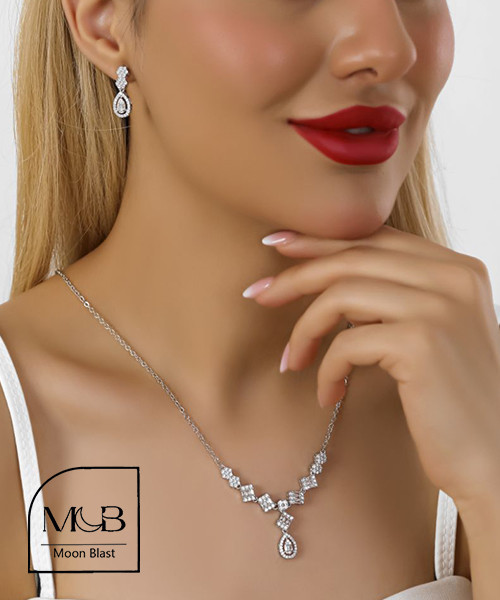 دیدن محصولات مرتبطنیم ست جواهری شیک شامل گردنبند و گوشواره با طراحی ظریف