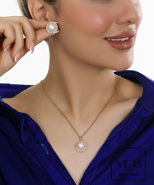 دیدن محصولات مرتبطنیم ست جواهری شیک شامل گردنبند و گوشواره با طراحی ظریف